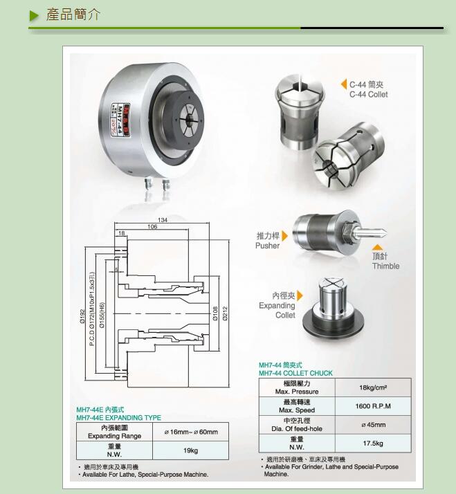 MH7-44(筒夹式)适用于研磨机、车床及专用机