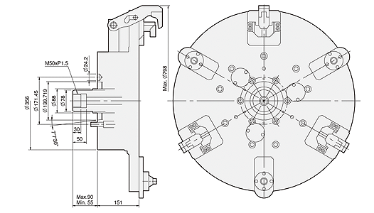 配合件直接安裝並符合DIN, BS, ISO, ASA, B5-9, A型之主軸標準。