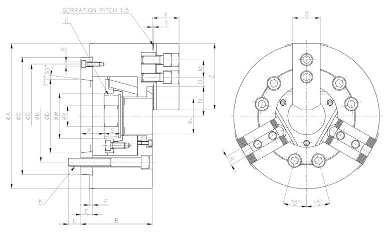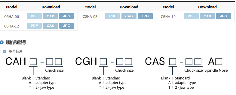 特征• 性能好、精度高 : 此卡盘与CAH型卡盘结构相同,因此确保其优越的性能和质量,且附件和连接部件具有兼容性。• 直接安装型 : 可直接安装在符合国际准A型主轴的短锥安装面上。• 换装方便 : 若更换附件可在最短的时间内,达到其运行的精度要求。• 便于安装选择 : 可通过转接法兰与各不同规格的主轴连接,扩大了其使用范围。