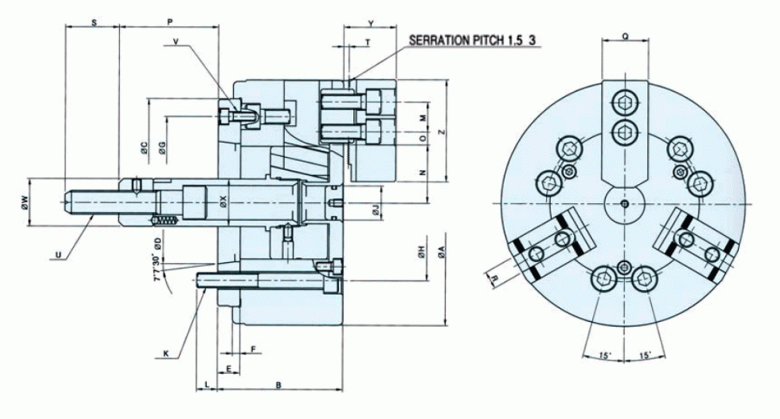 特征:• 直接安装型 : 可直接安装在符合国际标准A型主轴的短锥安装面上。• 换装方便 : 若更换附件可在最短的时间内,达到其运行行的精度要求。• 性能优、质量好 : 此卡盘与CAS型卡盘结构相同,因此确保其优越的性能和质量,且附件和连接部件具有兼容性。• 便于安装选择 : 可通过转接法兰与各种不同规格的主轴连接,扩大了其使用范围。