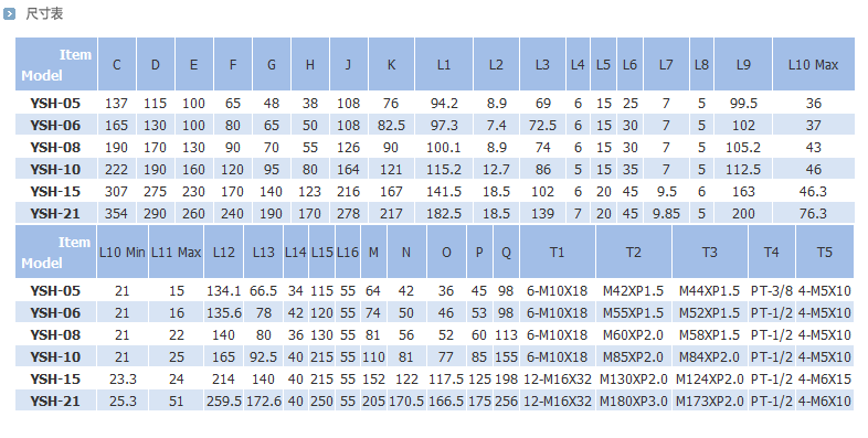 特征:• 实现兼容性 : 实现VAH型油缸的连接部的兼容性。• 体积小、重量轻 : 与VAH型油缸相比长度缩短了30%,达到体积小、重量轻、高速化的效果。• 保障安全 : 此回转油缸带有单向阀,当断电时,压力仍可保持一段时间,因此确保安全。 • 防泄漏设计(专利注册:0172805) : 回转油缸主体采取防泄漏设计,完全消除漏的可能性。