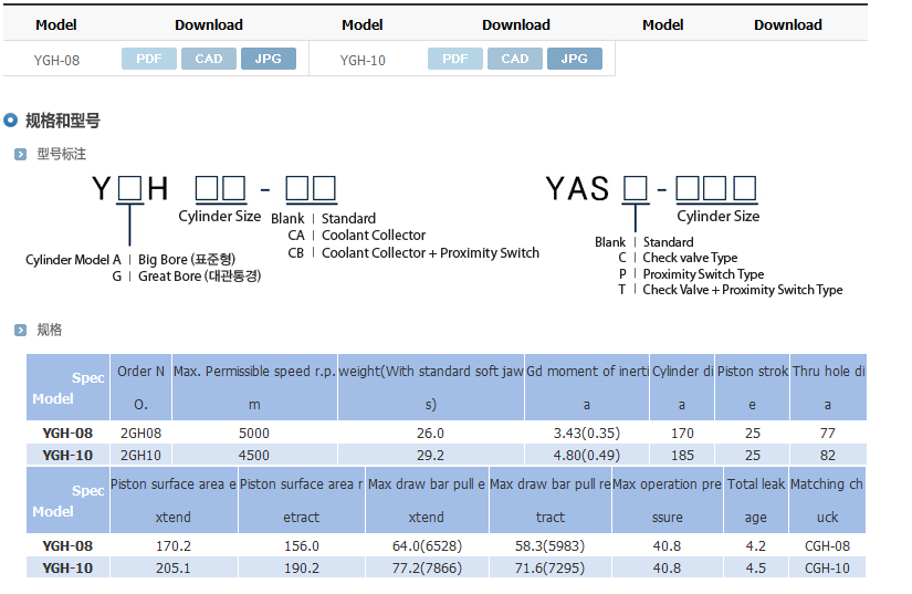 特征• 超大通孔 : 此气缸具有比同等气缸大的通孔,因此使用范围更加广泛,如棒料输送机进行加工。• 实现兼容性 : 实现YAH型油缸与连接部的兼容性。