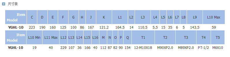 特征:• 保障安全 : 带有单向阀,当断电时,压力仍可保持一段时间,因此确保安全性能好、精度高:此气缸与YGH型气缸结构相同,因此确保其优越的性能和质量,且附件和连接部件具有兼容性。