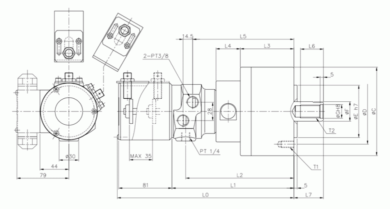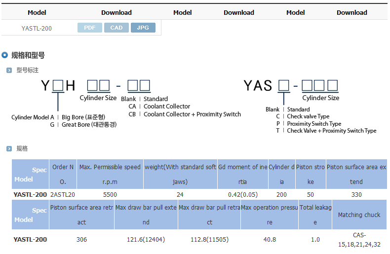 • 体积小、重量轻 : 此回转油缸以YAS回转油缸的规格为基础,故障小,确保高速旋转的安全性