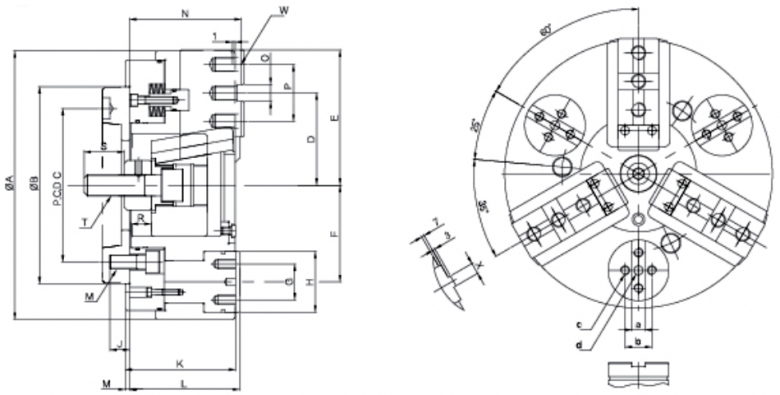 特征 1·与标准液压卡盘一样具有很多功能可使用,并且用于夹紧工件内径