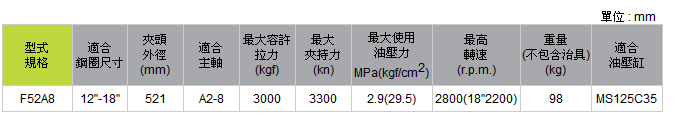F52型鋁輪圈夾頭採用高級合金鋼材質,所有滑動面經表面硬化及研磨處理,以提高迴轉度及耐久性。