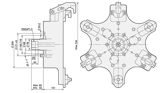 配合件直接安裝並符合DIN, BS, ISO, ASA, B5-9, A型之主軸標準。