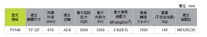 F61型鋁輪圈夾頭採用高級合金鋼材質,所有滑動面經表面硬化及研磨處理,以提高迴轉度及耐久性。