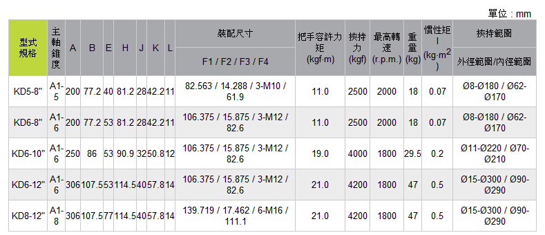 夾持精度0.03mm (0.0012”) T.I.R.。