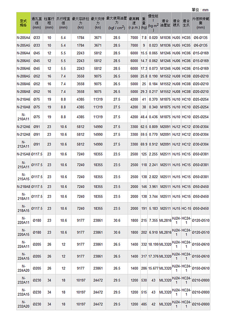 N-200A型夾頭是依 ASA B5.9 A型主軸標準而設計。