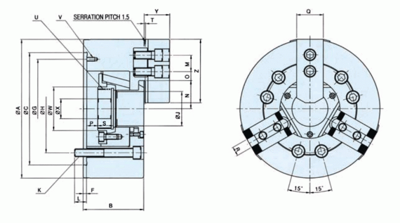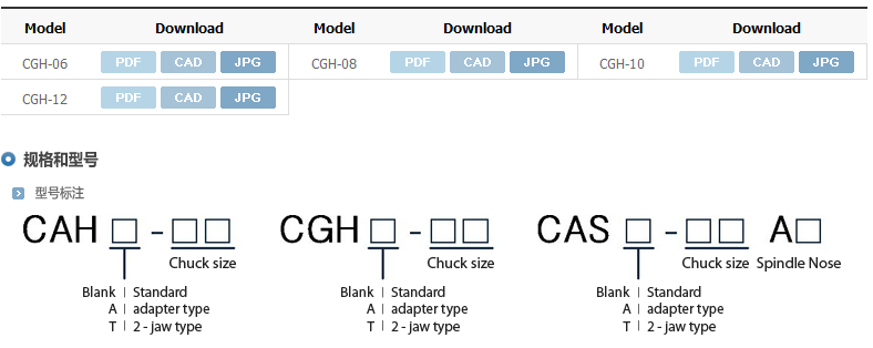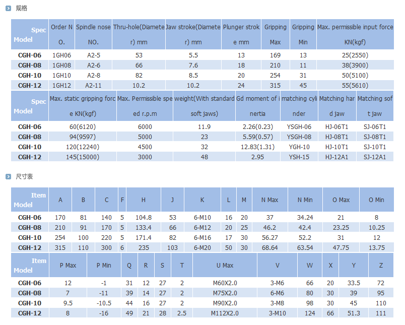 特征:• 超大通孔 : 此卡盘具有比同类卡盘大的通孔,因此使用范围更加广泛,如棒料输送机进给加工。• 重量轻: 卡盘的重量减轻,因此卡盘频繁起动和正反向运转的效率大大提高。• 性能好、精度高 : 此卡盘与CAH型卡盘结构相同,因此确保其优越的性能和质量,且附件和连接部件具有兼容性。• 直接安装型 : 可直接安装在符合国际标准A型主轴的短锥安装面上。