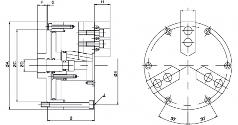 特征 1· 气动卡盘是主要加工有色金属和陶瓷或者更容易变形的工件,并且卡盘内部装置了气缸